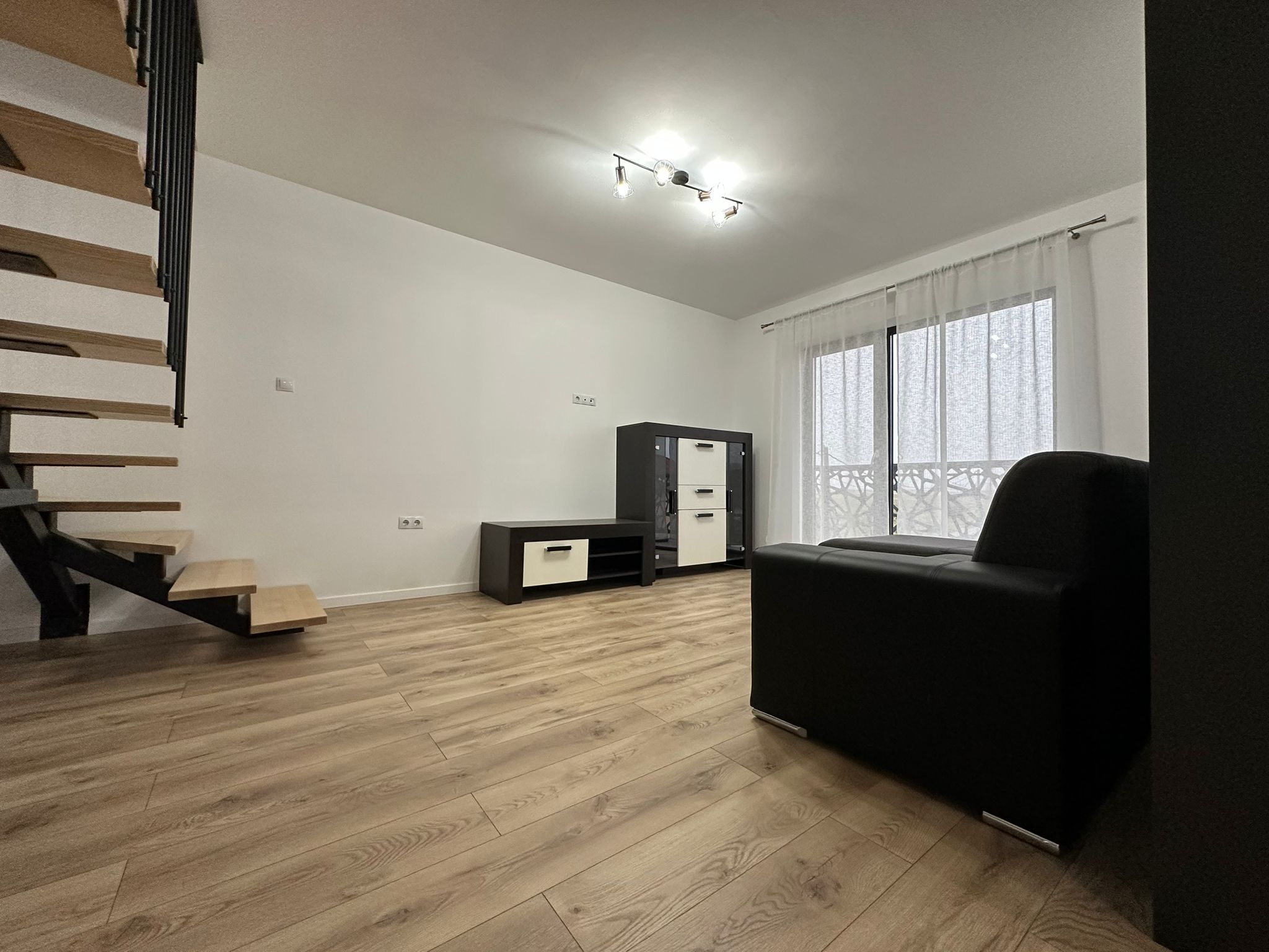 la etajul 2 – 1 living, 1 dormitor, 1 bucătărie, 1 baie, 1 balcon , 1 hol