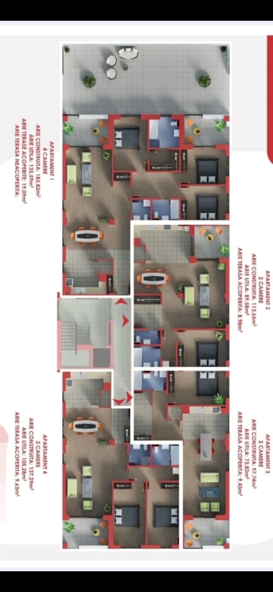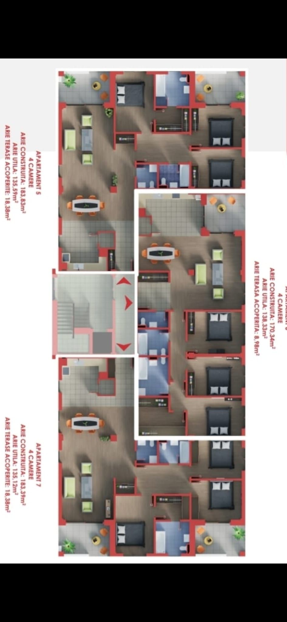 Apartament 4 camere,3bai,136mp.utili+19mp terase acoperite