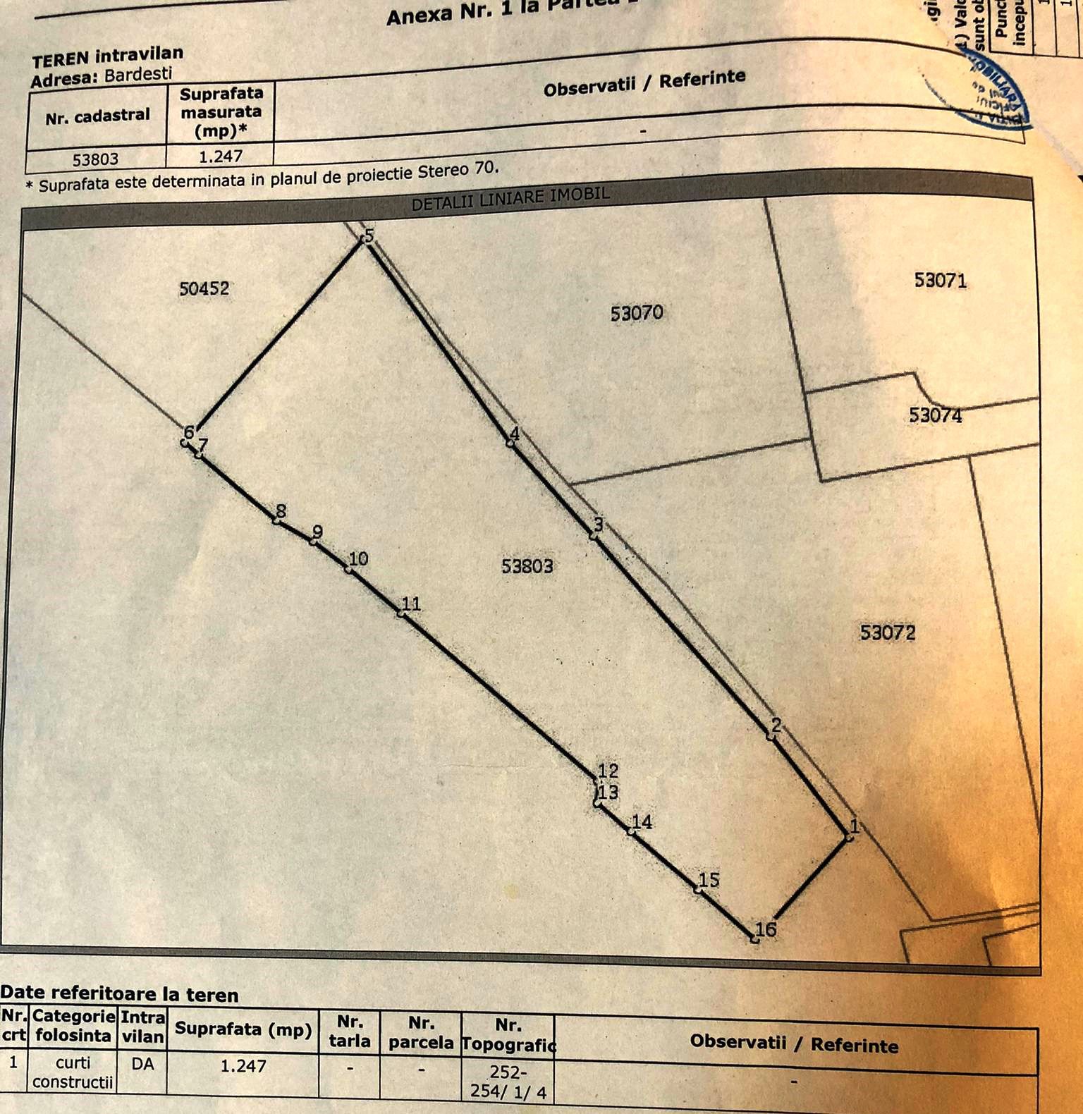 De vanzare teren intravilan 1247mp, situat in Bardesti, Santana de Mures