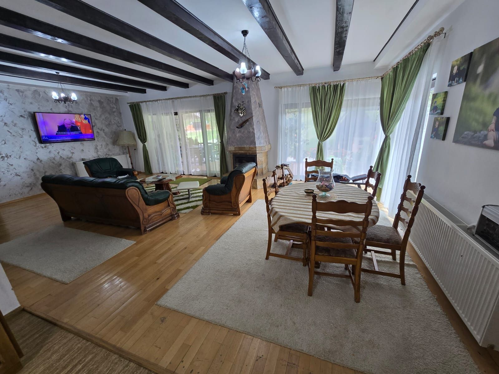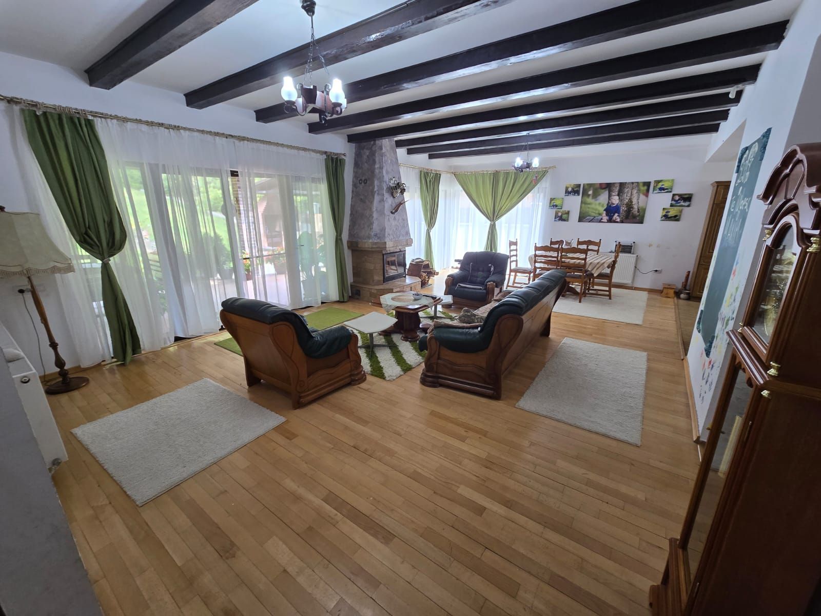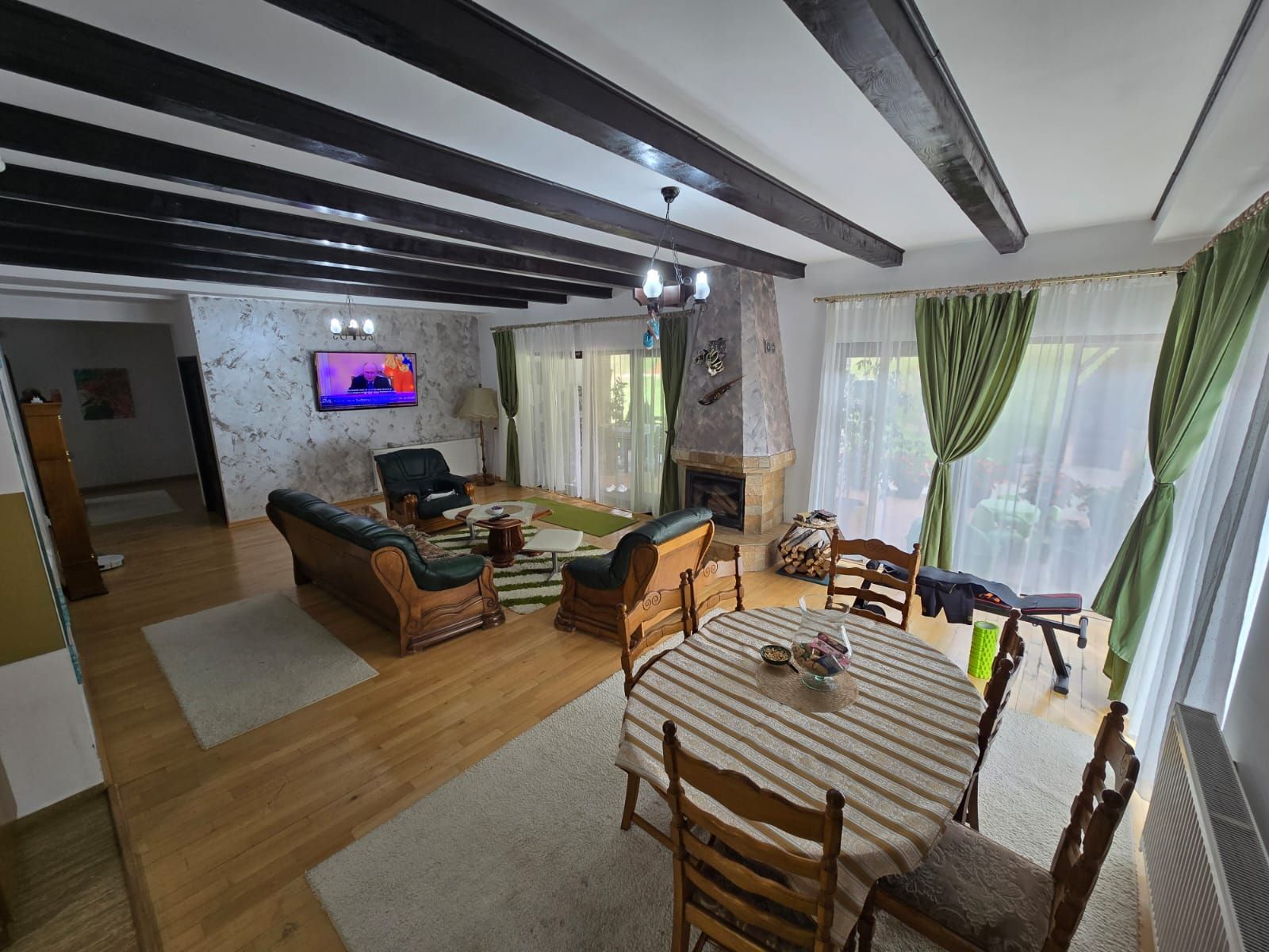 – centrală termică+centrală pe lemne, calorifere, geamuri termopan,