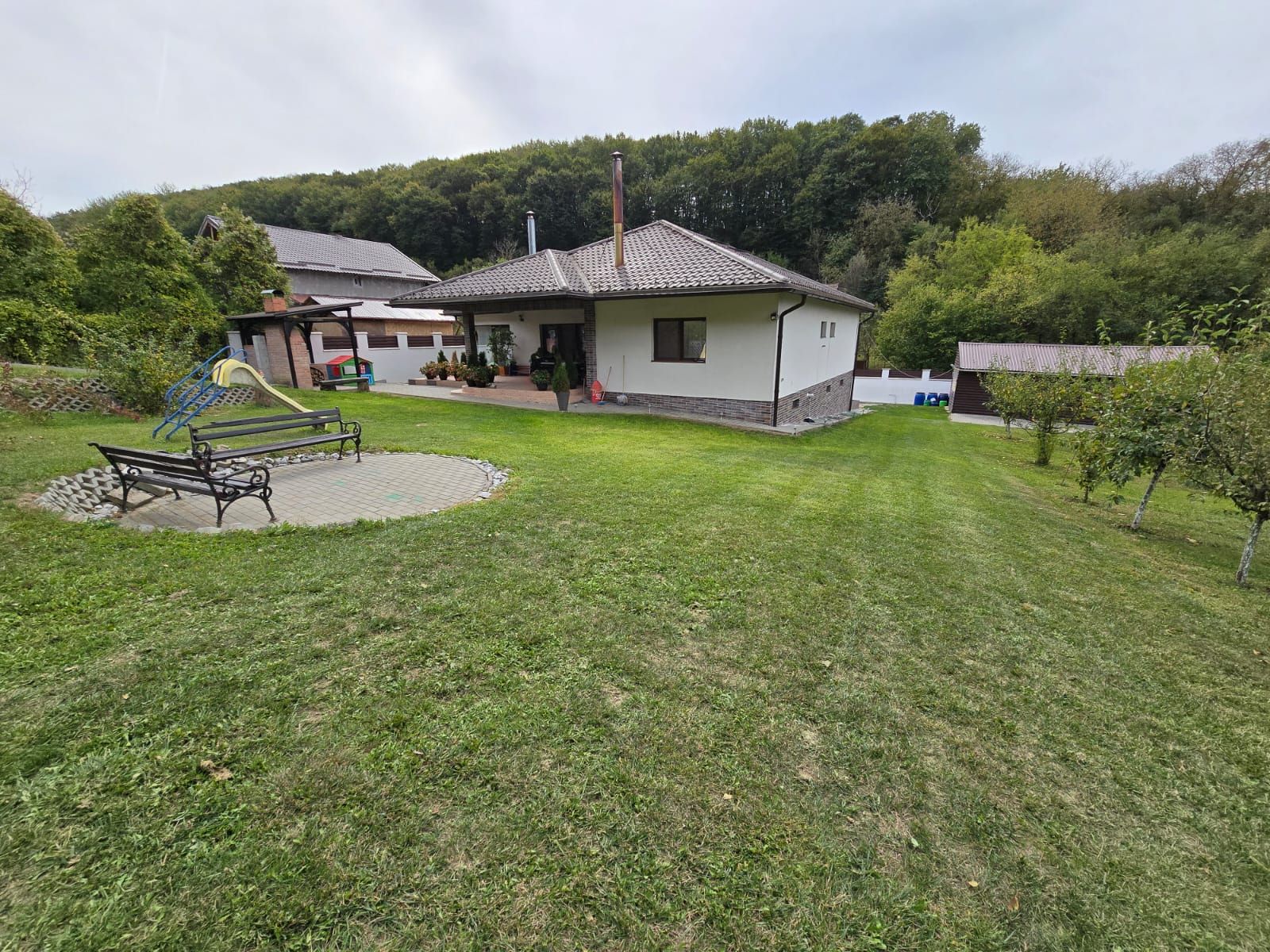 – curte amenajată cu gazon, pavaj, pomi fructiferi