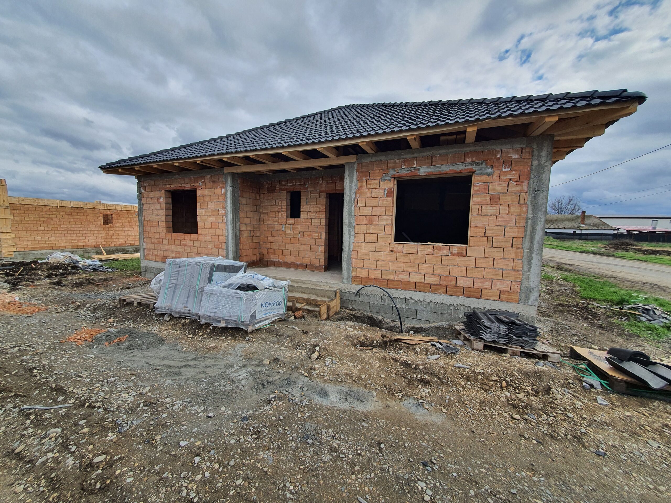 Locuința este compusă din 3 dormitoare, 2 băi, 1 living, 1 bucătărie, hol, 1 cămara, 1 dressing (din care se poate urca în pod unde se mai poate amenaja o camera de 45 mp) și 2 terase acoperite . izolația podului care este realizata cu vata 20cm , termosistemul casei este realizat din polistiren 10 cm grosime, Casa este finisata, cu tencuiala decorativa, geamuri termopan