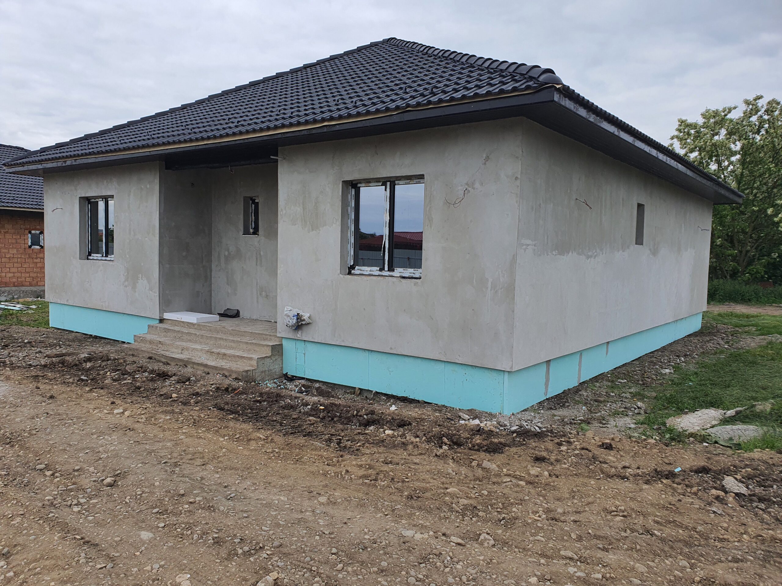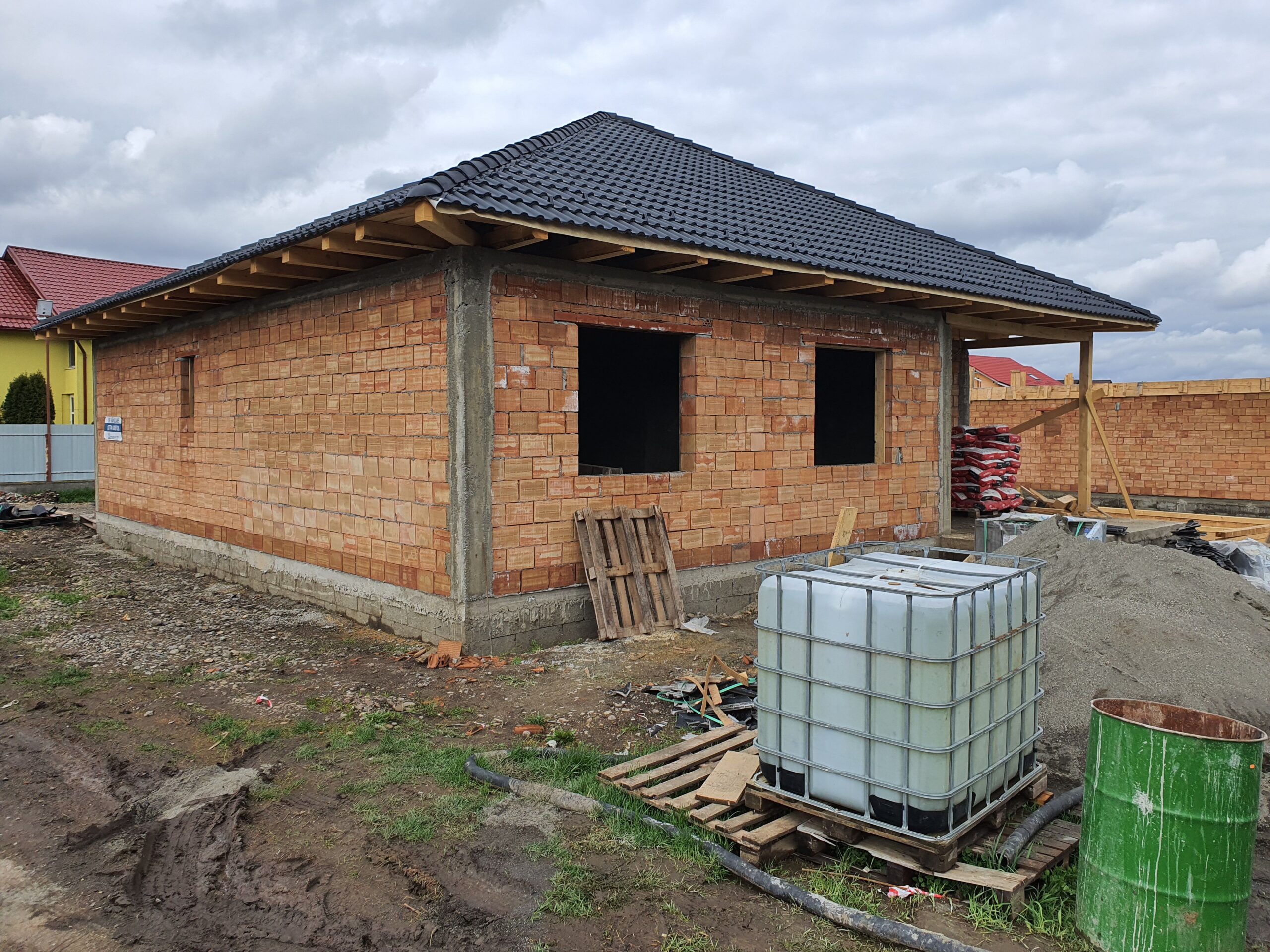 – fundația casei are o adâncime de 1 m, pereții sunt din cărămidă, acoperișul de țiglă, izolată cu polistiren de 10 cm.