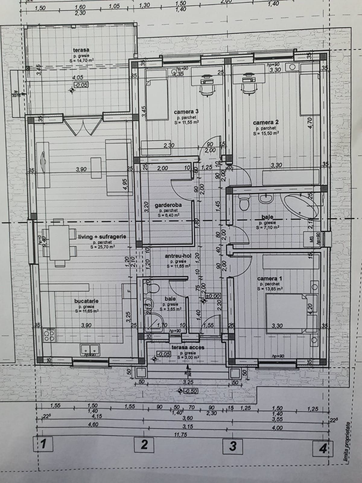 – : 1 living, 3 dormitoare,1 bucătărie, 2 băi,1 dresing,1 debara, 1 terasă acoperită